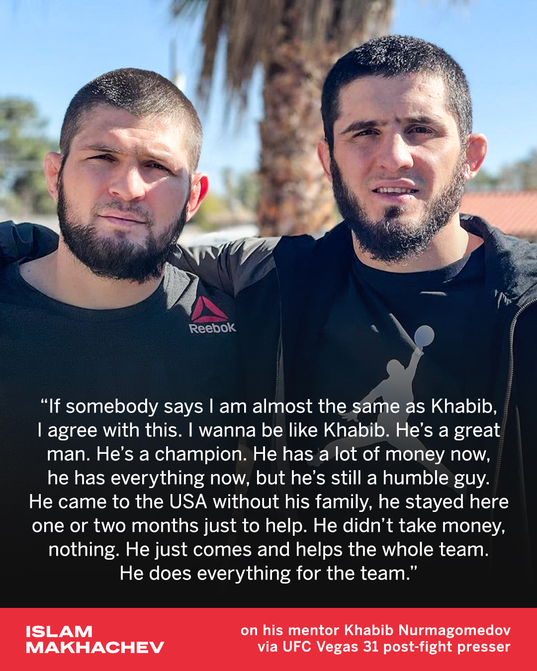 Islam Makhachev And Khabib : In addition to that, islam makhachev is backed by khabib's team to take the spot of the eagle in the ufc, riding on his wrestling prowess and high fight iq.. Jun 29, 2021 · islam's current ranking is 9th position in ufc's lightweight division. Discussion in 'ufc discussion' started by rodkek, jun 1, 2021. Sep 27, 1991 · islam makhachev breaking news and and highlights for ufc on espn 26 fight vs. Islam has won seven straight and is coming off a dominant submission victory over drew dober. Islam makhachev is a russian professional mixed martial artist in the ufc lightweight division.